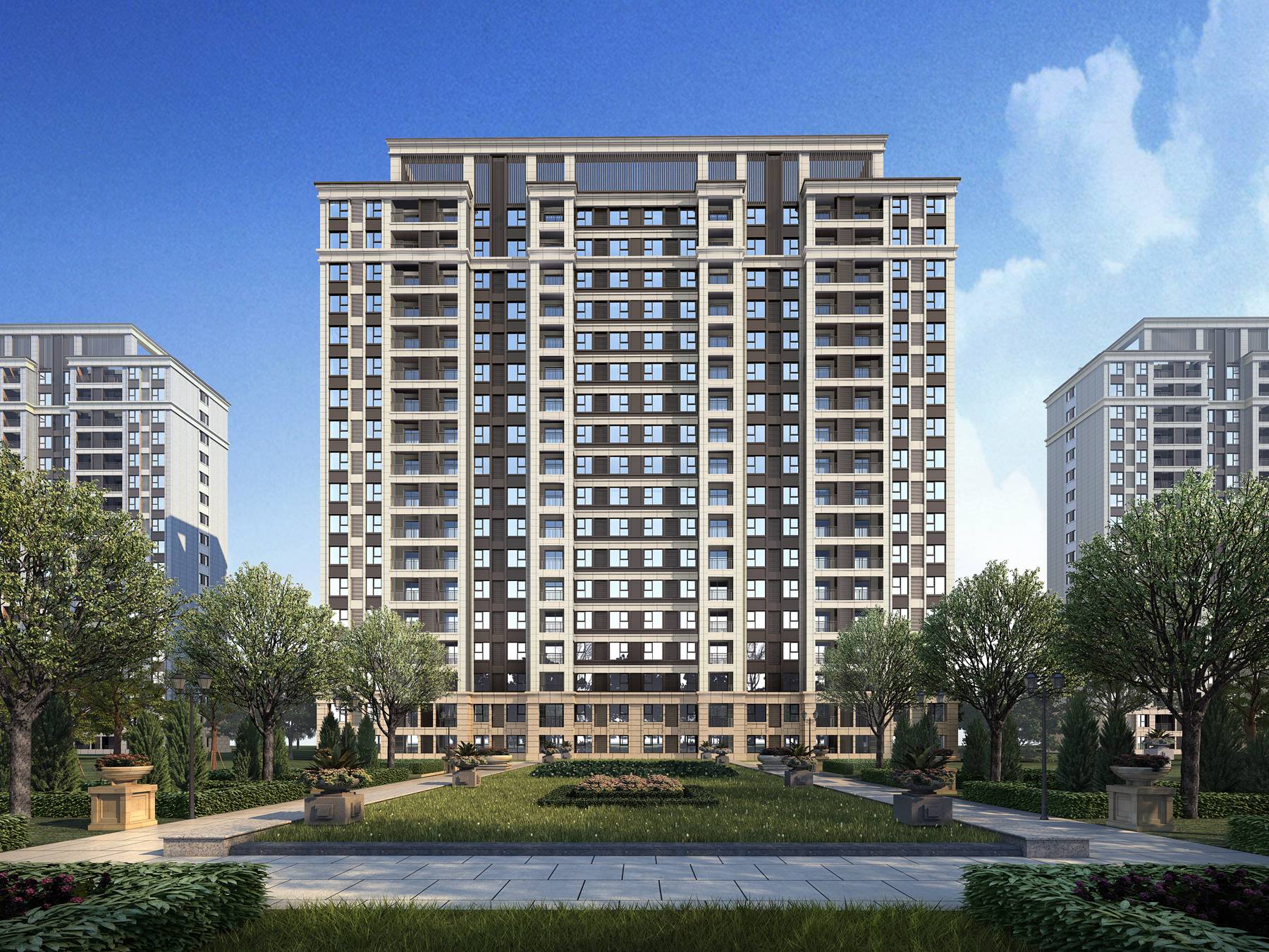 項(xiàng)目北鄰長(zhǎng)江東路,西鄰新都路,總占地約12.8萬(wàn)方,總建筑面積約23萬(wàn)方(計(jì)容面積),共約1986戶,由33棟住宅組成,其中洋房19棟、高層14棟。項(xiàng)目綠化率約為35%,容積率D地塊約1.7,F地塊約1.9。項(xiàng)目采用新古典的建筑風(fēng)格,樓棟基底外立面為石材,以上為真石漆。社區(qū)打造了跑道、漫步道和各大主題樂(lè)園,讓業(yè)主們老有所享,小有所樂(lè),貼心的規(guī)劃滿足全家人的理想生活。